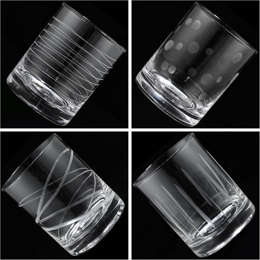 Set of 4 Clear Hand Blown Etched Old Fashioned Tumblers