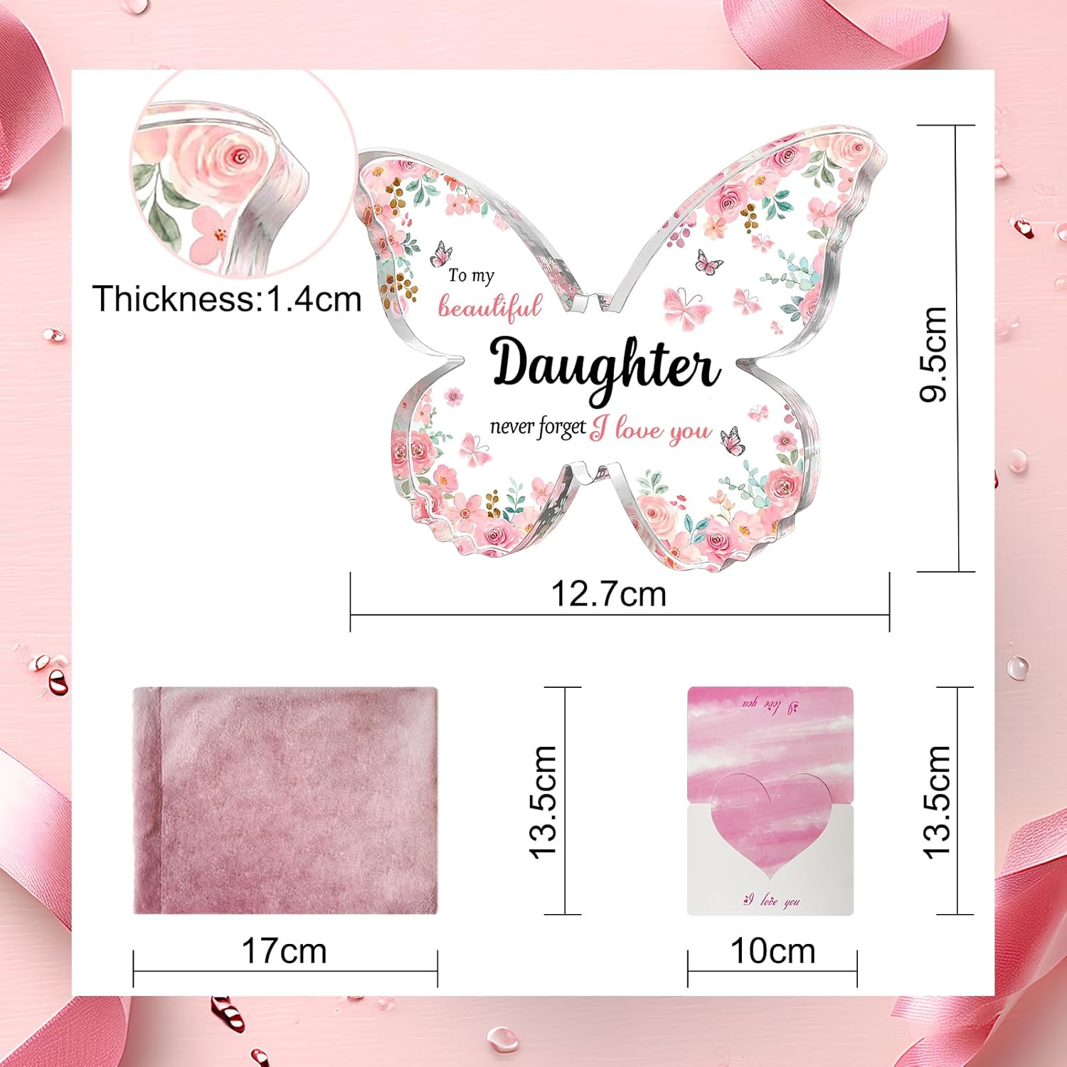 Beautiful Pink Butterfly Acrylic Free Standing Plaque - To my Beautiful Daughter