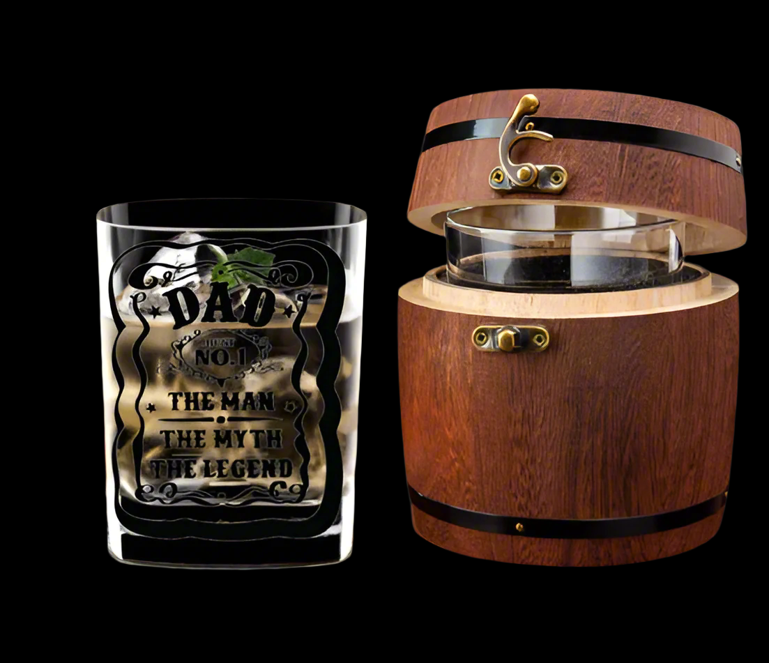 Dad Whisky Glass in Wooden Barrel Gift Box