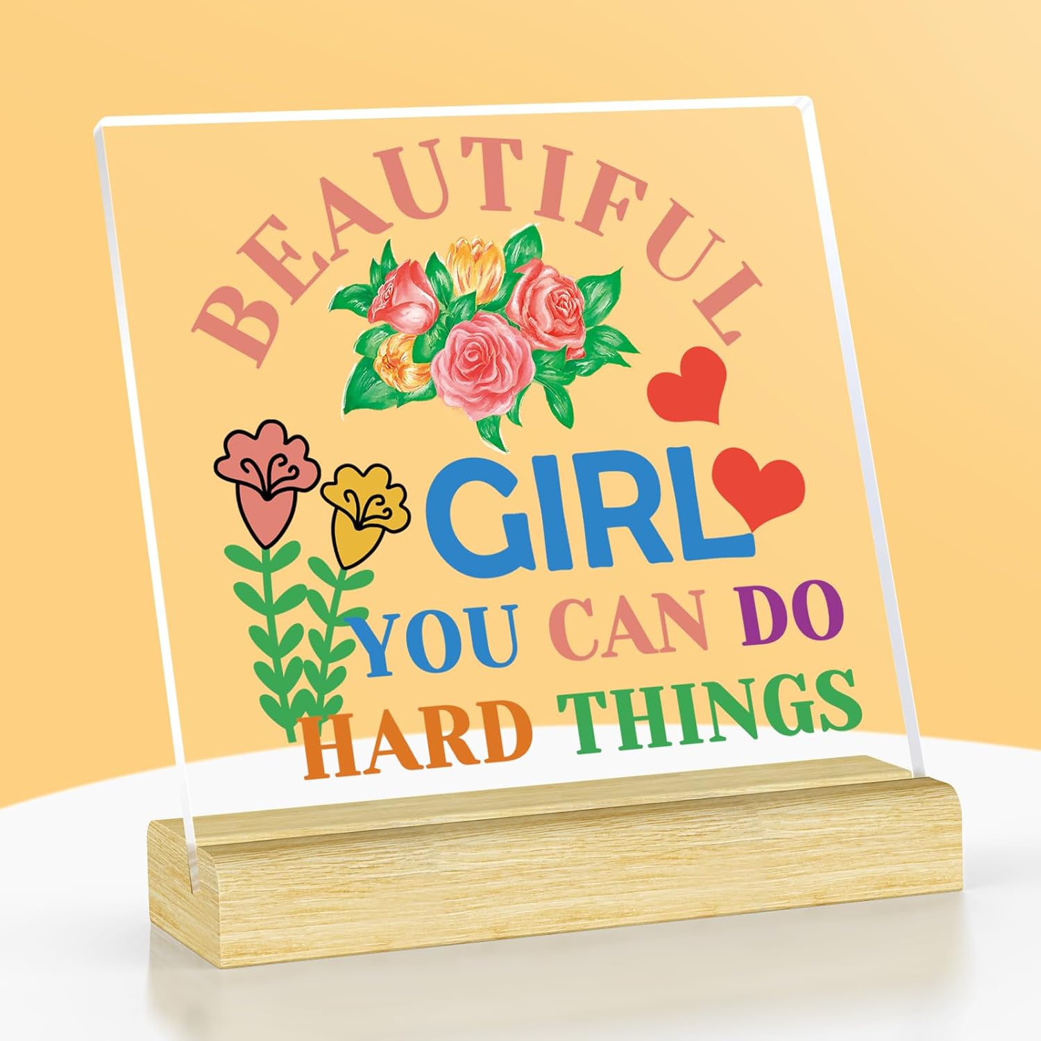 - Inspirational Gifts for Women: "BEAUTIFUL GIRL YOU CAN DO HARD THINGS". Gifts for teen girls, Graduation gifts, inspirational desk plaque sign with wood stand for women, birthday gifts for girls, Christmas gifts, friendship friend gifts.