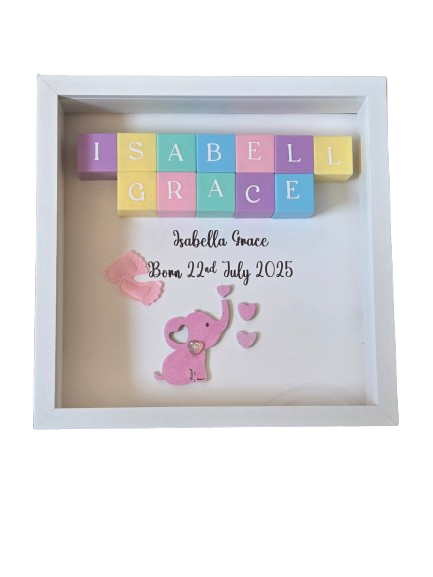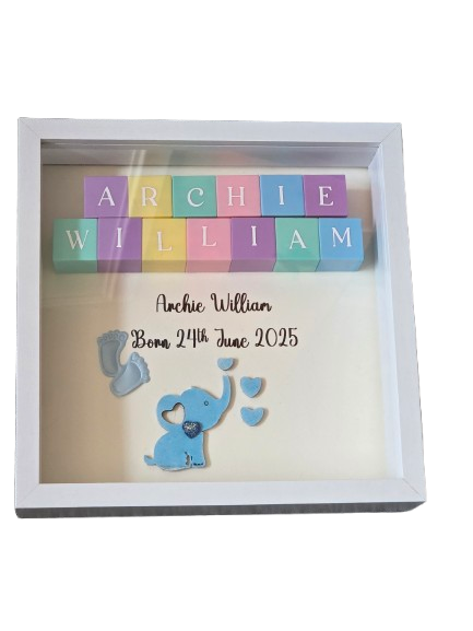 Personalised New Baby Shadow Box Frame. UV printed to ensure quality lasting print.
