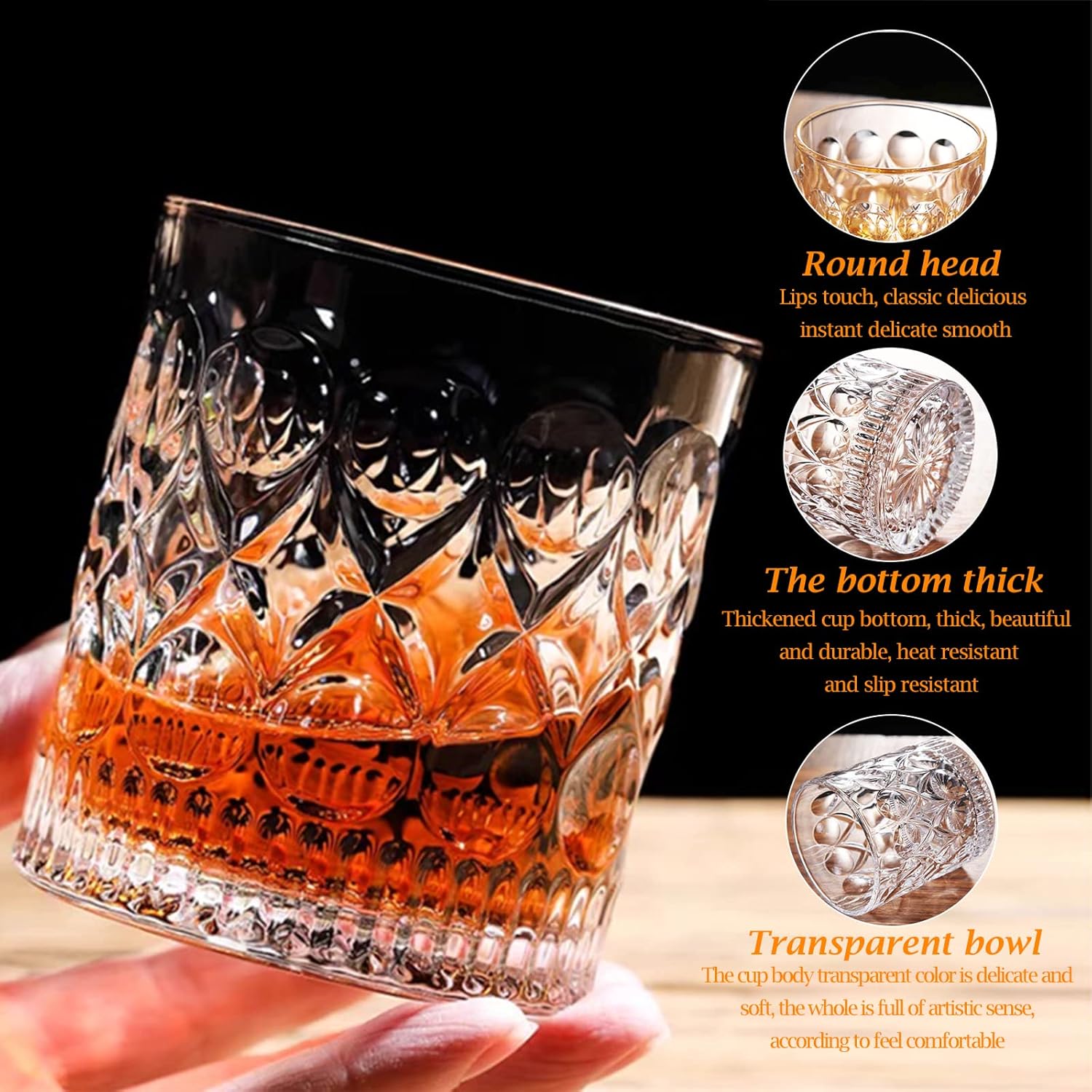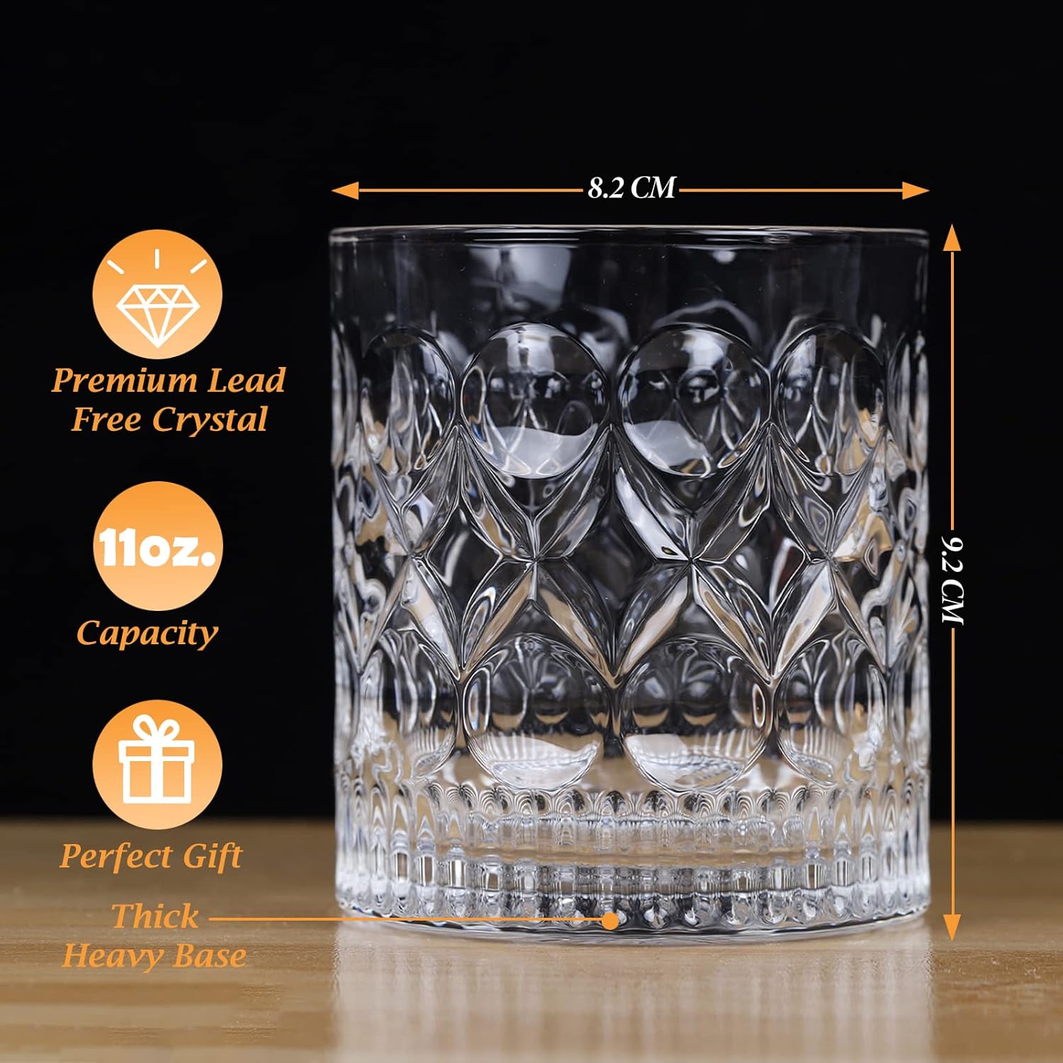 • Stylish lowball glass: The shape of this classic shaker glass adopts an elegant engraving design. Due to the uneven surface of the crystal material, it produces light refraction. With different viewing angles, you can experience a variety of different visual feelings. It is very suitable for family, bar, restaurant, party, wedding and other occasions to drink whiskey, vodka, cocktail and beer or any wine you like.