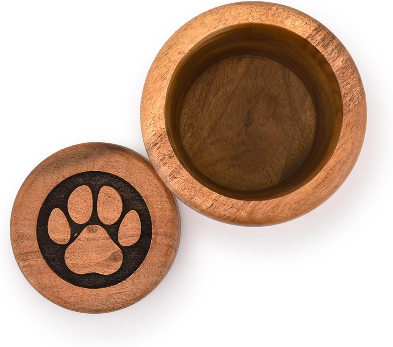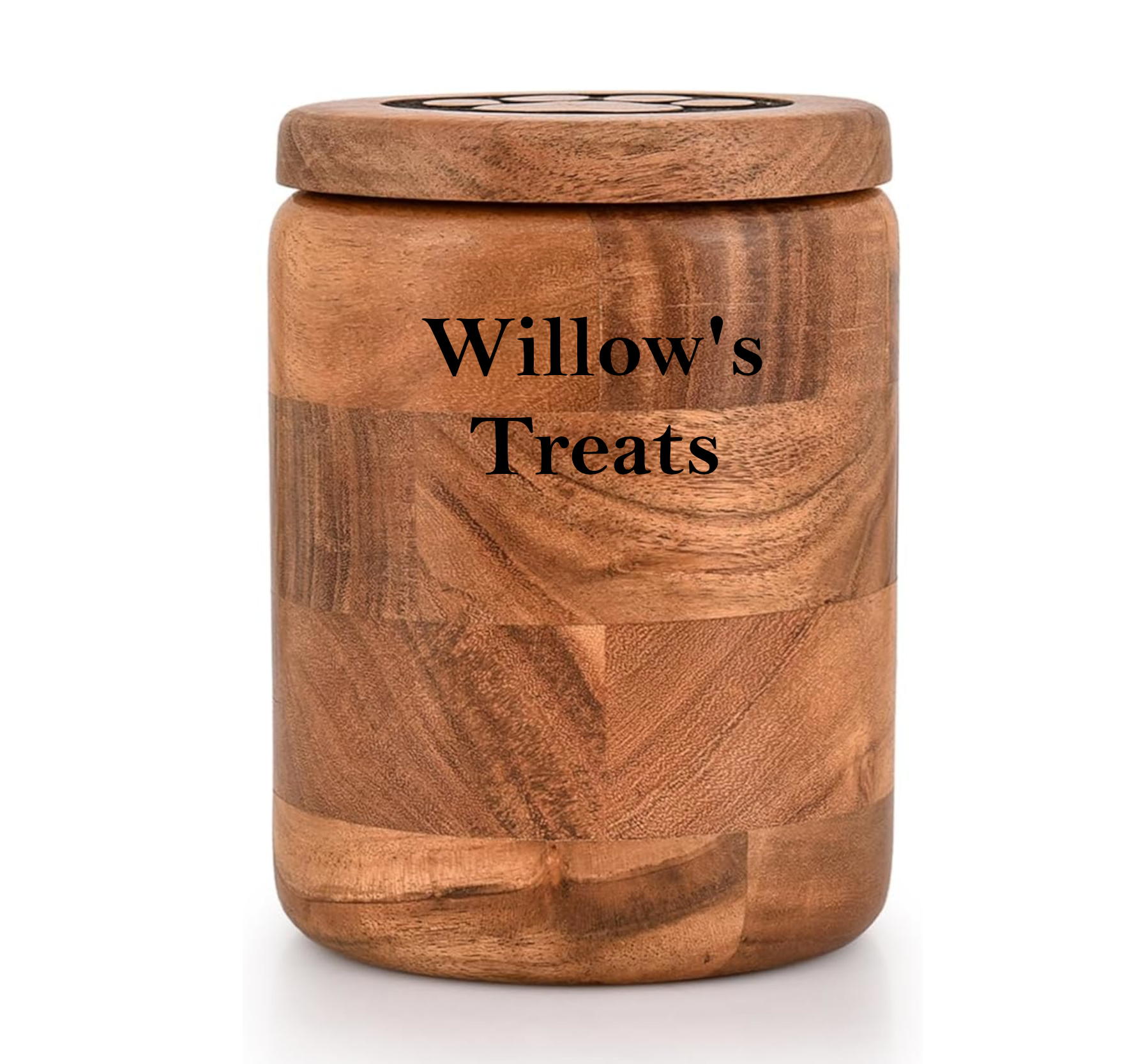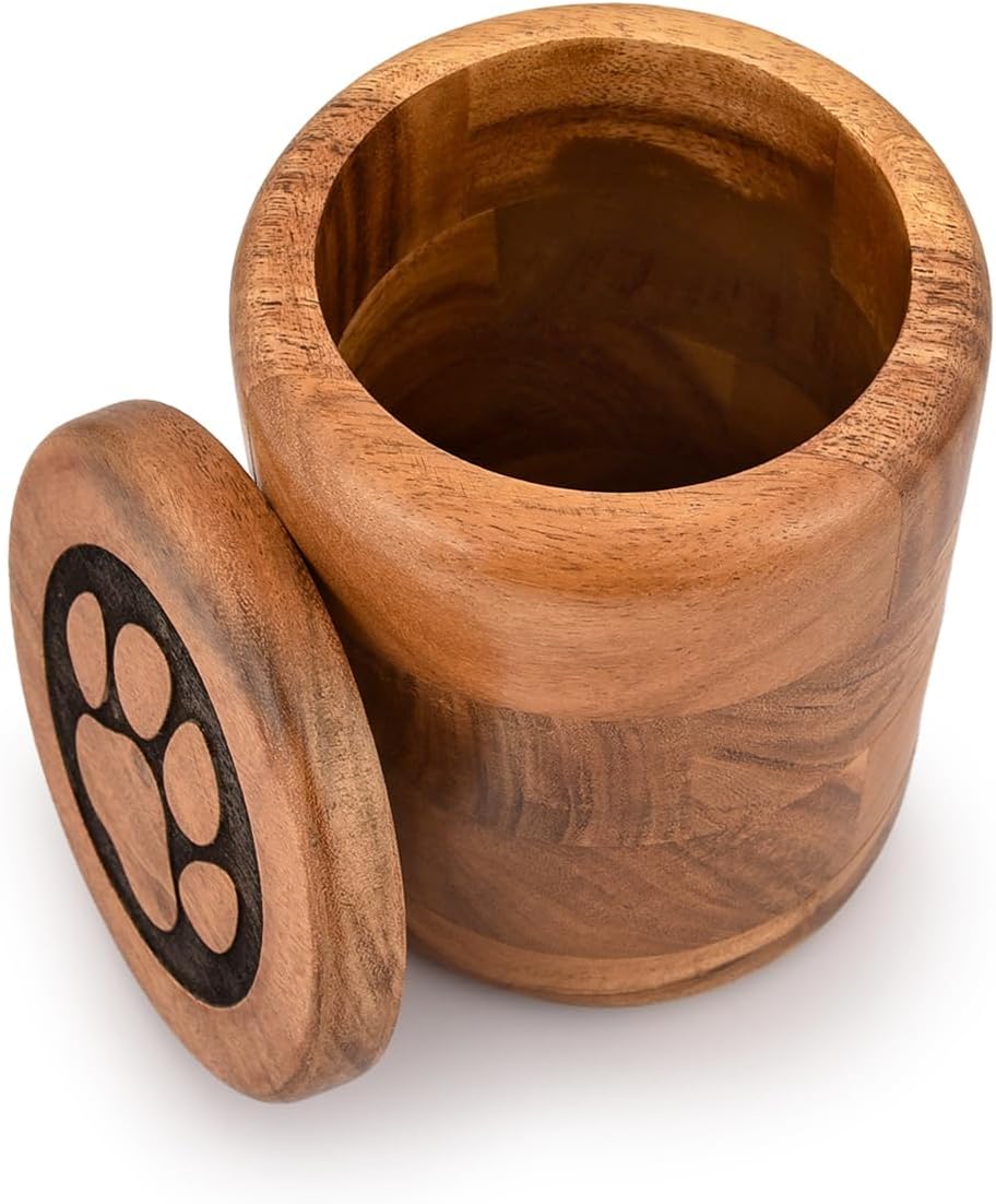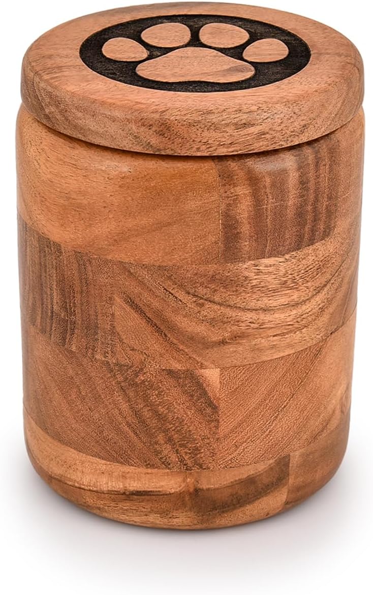 Wooden Pet Treat Storage Box Container with engraved paw print