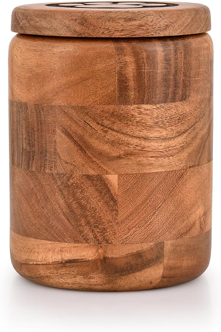 - The canisters are made of high-quality Acacia Wood which is not easy to crack and mould and is more durable than plastic and glass. The lid is made of wood, environmentally friendly and effectively keeps the items dry and fresh.